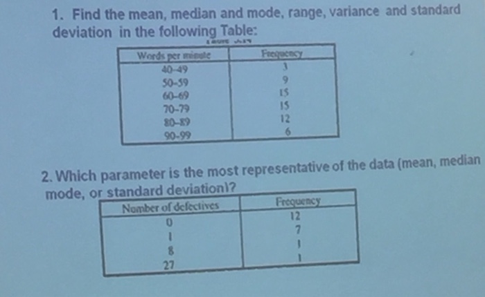 Find The Mean Median And Mode Range Variance And Chegg Com